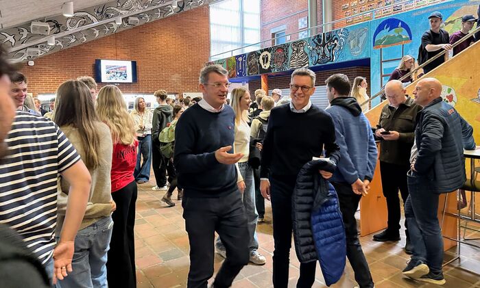 Først var det forsvarminister Troels Lund Poulsen, der besøgte Favrskov Gymnasium sammen med Thomas Storm - Borgmesterkandidat KV25